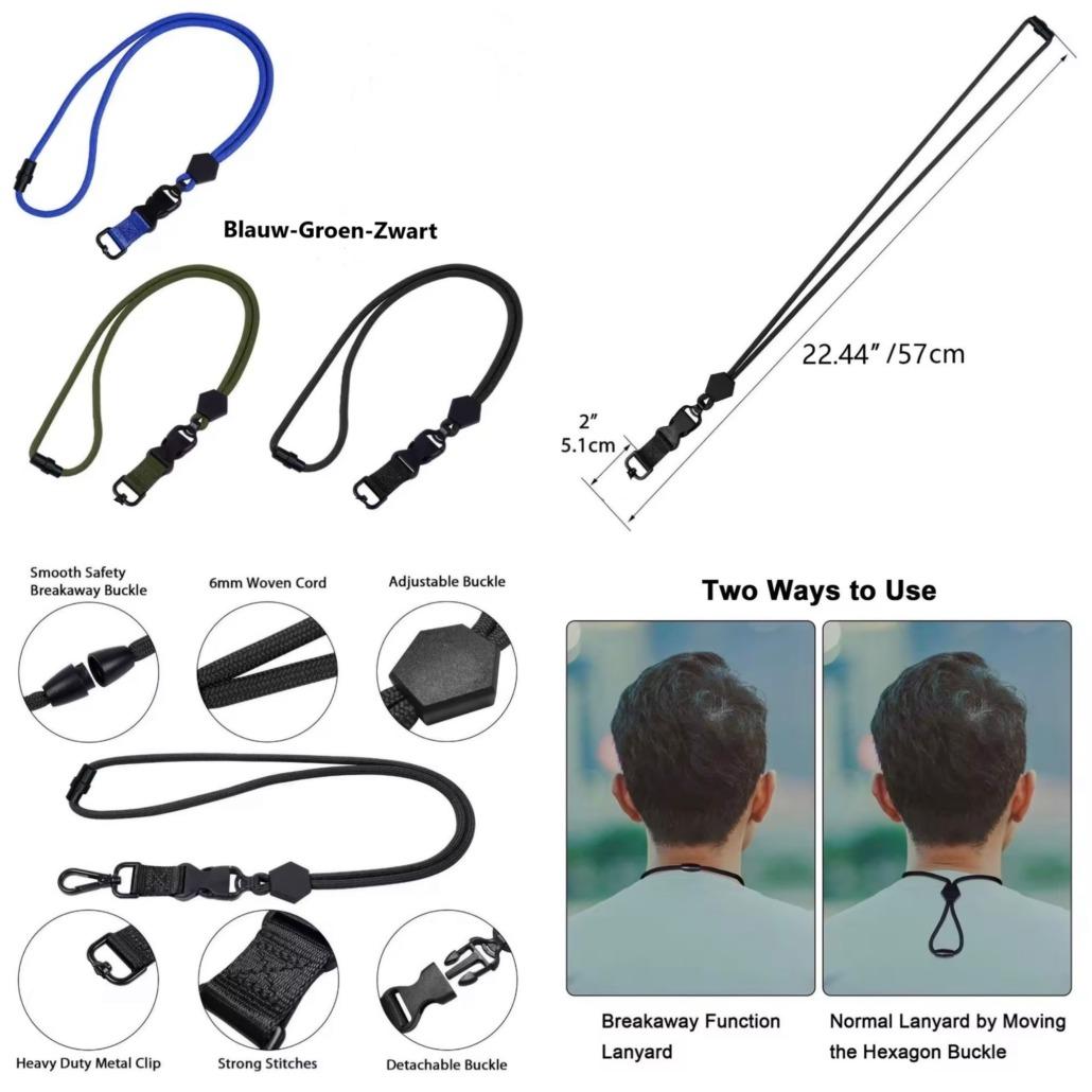 Inclusief stevige ketting/koord – ketting of Nylon koord. Je draagt hem om de nek of bevestig hem aan je uitrusting. Een praktische Nylon koord is €2,50 extra.